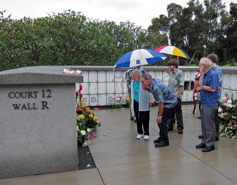Sadly John died on November 19, 2010. A version of his obituary appeared in the Island Ad-Vantages; the notice of his death in the Honolulu Star-Advertiser has limited information about John. Here is the Memorial Minute for his memorial meeting for worship held at 3:30 pm December 19, 2010 at Honolulu Friends Meeting. (For directions from Arcadia on Punahou Street, you can try this screen capture here or use a real link to Google maps here). For those not attending, here is the handout for the memorial meeting with a few extra photos from the display. As he requested, his ashes were inurned at Punchbowl Cemetery (National Memorial Cemetery of the Pacific) after a brief service the following morning. John's ashes are in Court 12, Wall R, #132 (lower left corner), and one can visit.